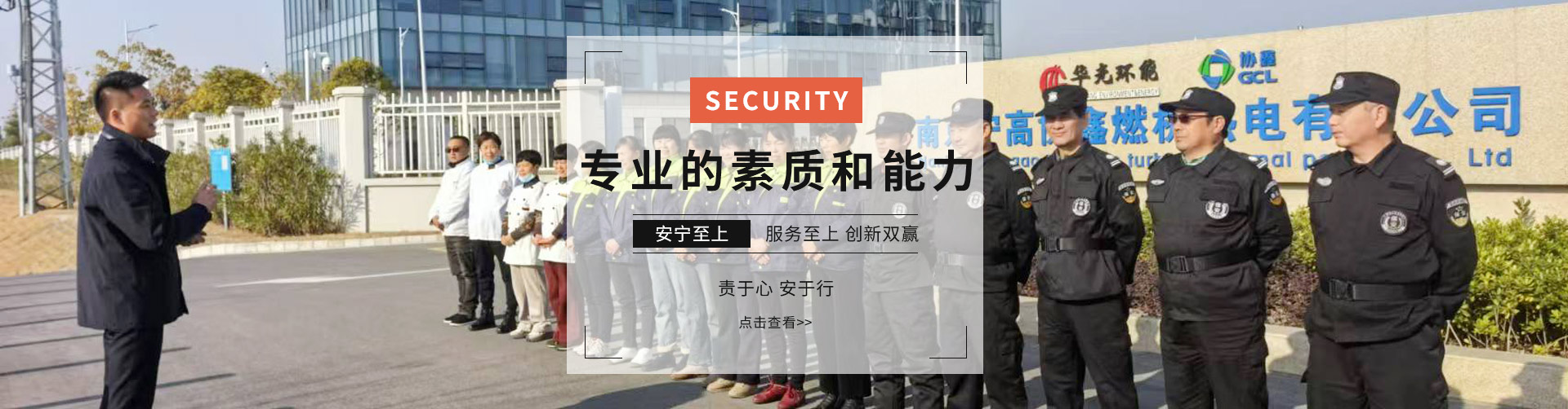 公司始終堅(jiān)持“務(wù)實(shí)、求精、效益、創(chuàng)新”的質(zhì)量方針,奉行“維護(hù) 雇主事業(yè)管理秩序,捍衛(wèi)雇主事業(yè)運(yùn)營安全,致力于雇主事業(yè)長期發(fā)展的保駕護(hù)航”服務(wù)宗旨,不斷加強(qiáng)公司管理層和員工隊(duì)伍建設(shè),以專業(yè)化、標(biāo)準(zhǔn)化的優(yōu)質(zhì)高效的服務(wù)質(zhì)量為各企事業(yè)單位提供專業(yè)的安全保衛(wèi)及物業(yè)管理服務(wù)。